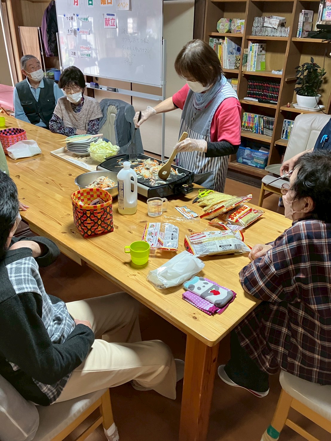 今回は焼きそばづくりで、焼きそばの味つけ、具材、食べる量など色々な話を楽しみながら作りました。